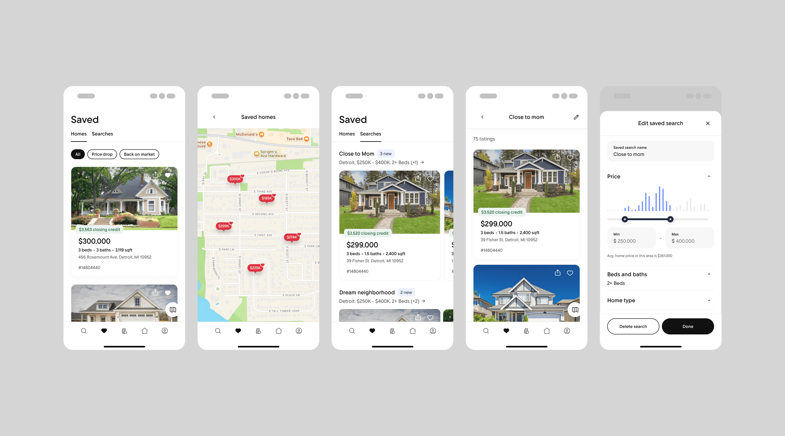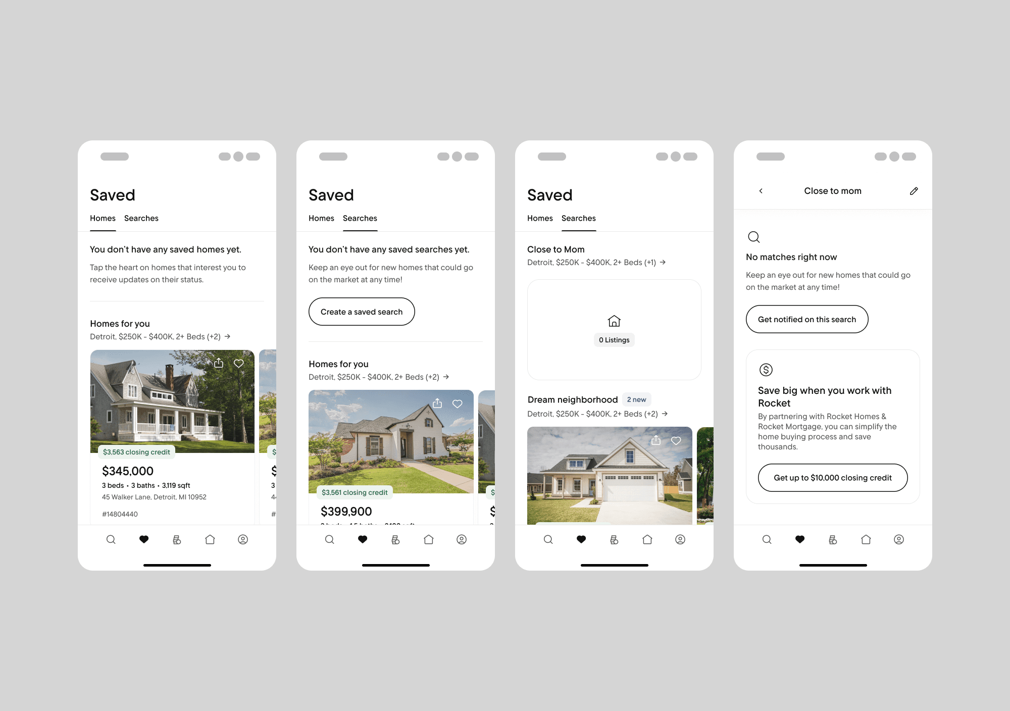 This feature directly supported lead conversion by keeping engaged users within Rocket's ecosystem. Users who set up saved searches and saved homes demonstrated higher purchase intent and were more likely to request agent services.