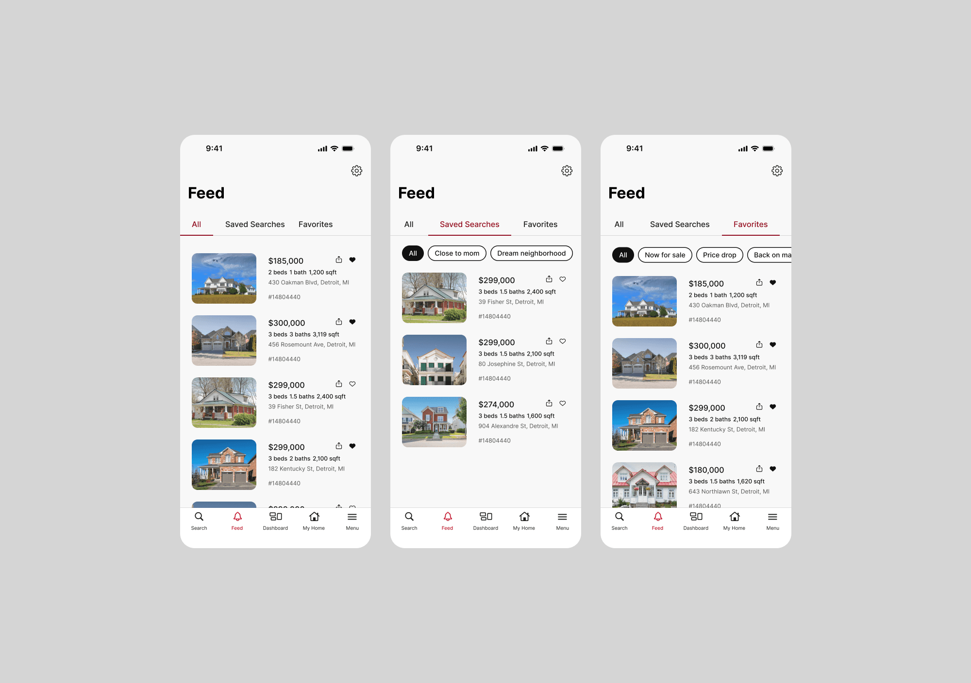 This feature directly supported lead conversion by keeping engaged users within Rocket's ecosystem. Users who set up saved searches and had favorite homes demonstrated higher purchase intent and were more likely to request agent services.